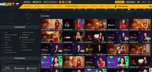 Baccarat Online Colombia en El Casino en Vivo de MelBet